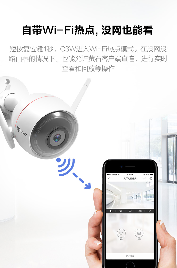 ??滴炇療o線wifi高清1080P壁掛式夜視智能安防家用報警監(jiān)控攝像機