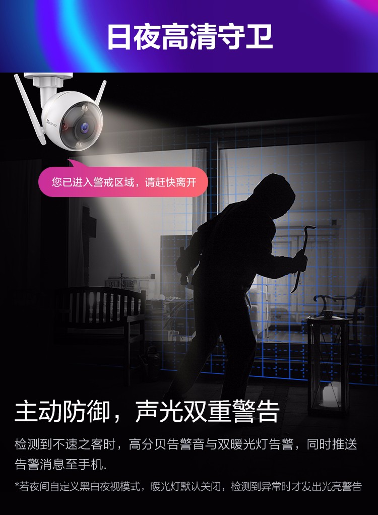 螢石C3Wi 200萬超清全彩AI雙向語音通話無線監(jiān)控攝像頭