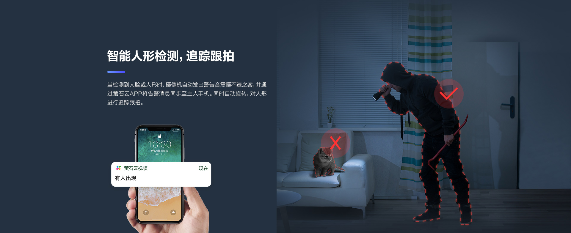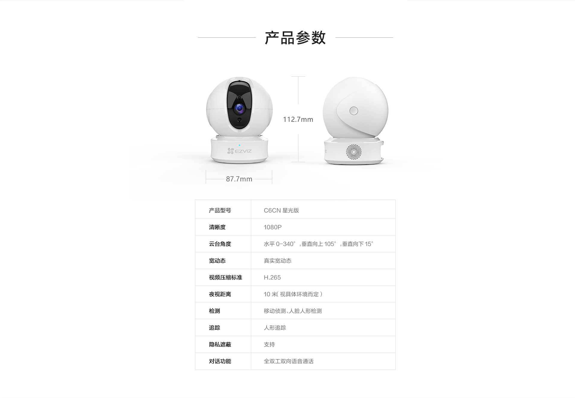 ??滴炇疌6CN星光級紅外夜視網(wǎng)絡(luò)攝像頭,可360度全方位監(jiān)控、雙LED紅外燈10米夜視距離、人臉人形偵測追蹤、一鍵鏡頭遮蔽隱私保護。